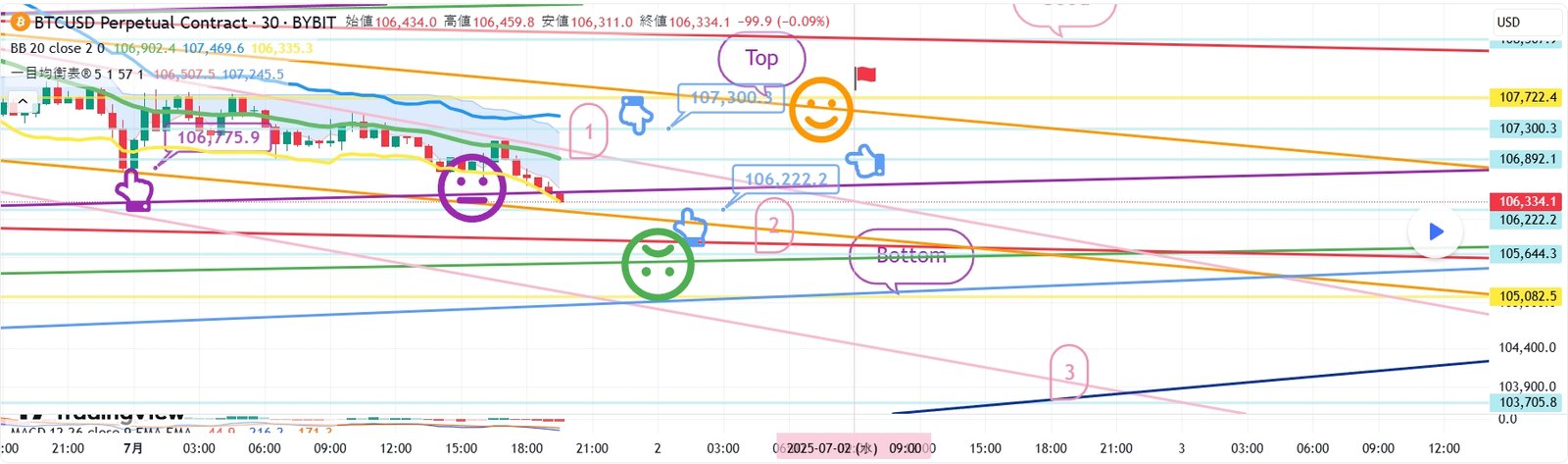 BTCUSD 7月1日ビットコインBybitチャート分析です