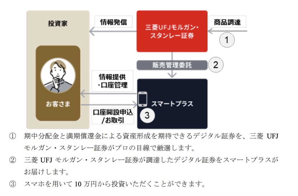 ASTOMOの運営は、三菱UFJモルガンがデジタル証券の選定と調達を担当し、スマートプラスは同社が提供する証券プラットフォーム「BaaS(Brokerage as a Service)」を基盤に、口座管理や取引システムの開発・運営を担う。