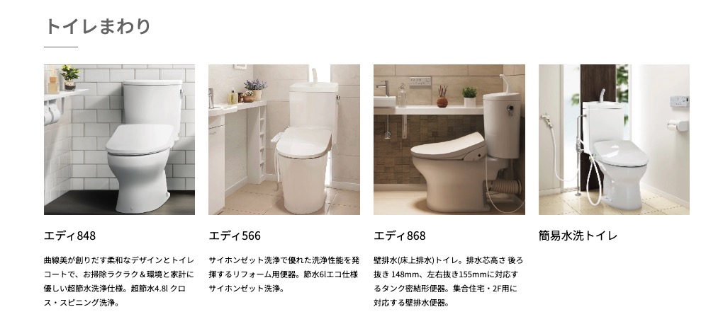 [トイレ製品ラインナップ:アサヒ衛陶HPから]