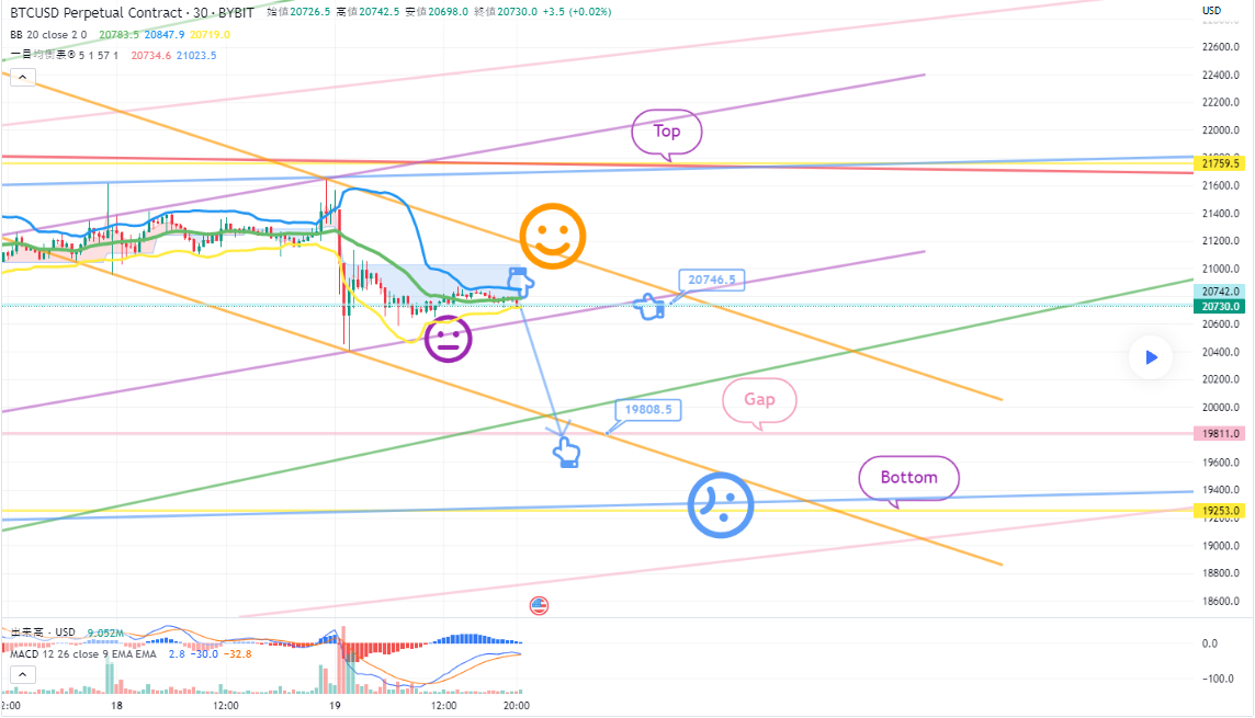1. 20729.5火ショートポジション入口区間 / オレンジ色抵抗線完全に突破時手節価