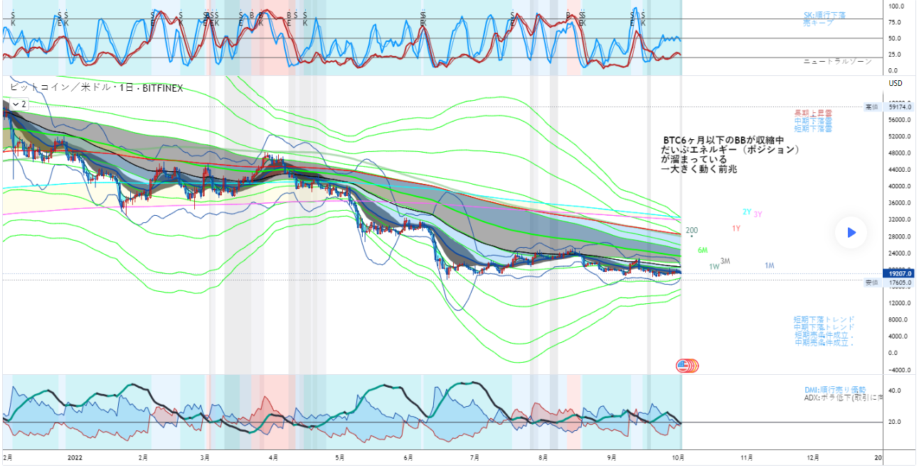 現在6ヶ月ボリンジャーバンドまで収縮が進んでいる状況。