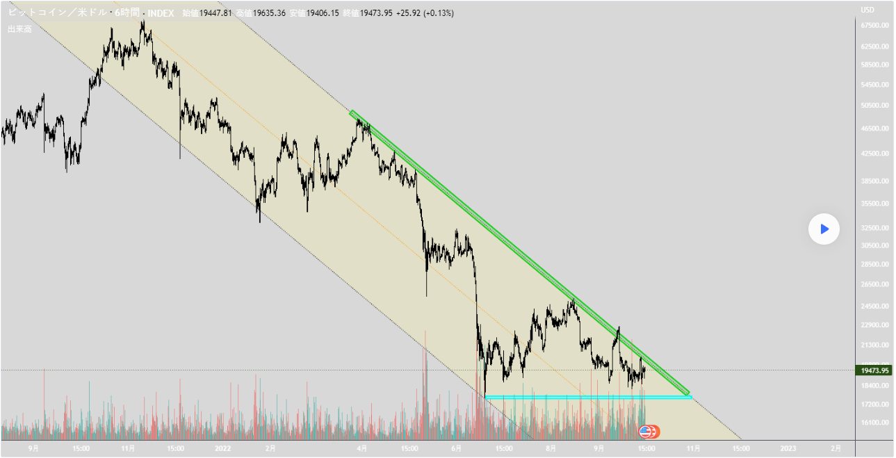 想定Fではチャネルを抜けてこないといけませんね。(Ⅰ)波始点を割る事なくチャネルを超えないといけませんので9月22日の安値を更新しないような進行想定を考えております。