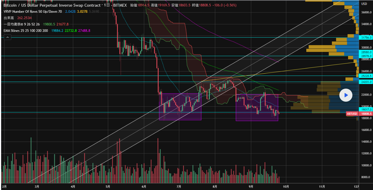 ショートの場合はそのあたりの動きでポジションを考え、ロングは18000前後の動きで考える