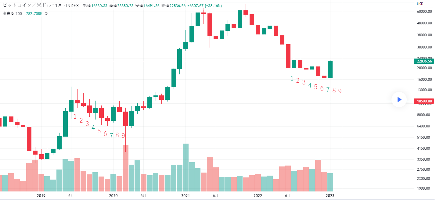 BTC月足がコロナショックまえと非常に似てるような気がします。3月セリクラ?