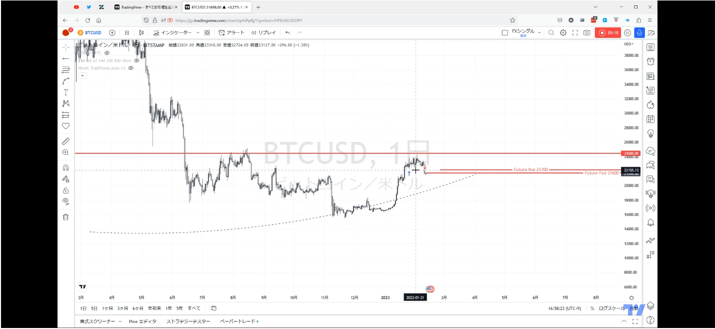 BTCUSDビットコインのトレードアイデア 先週末は先物の注目価格21600ドルに収束