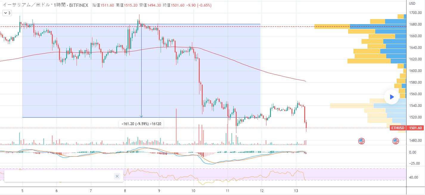 イーサリアムは2023年2月5日から2月11日の間で161ドル(-9.59%)下落しました。