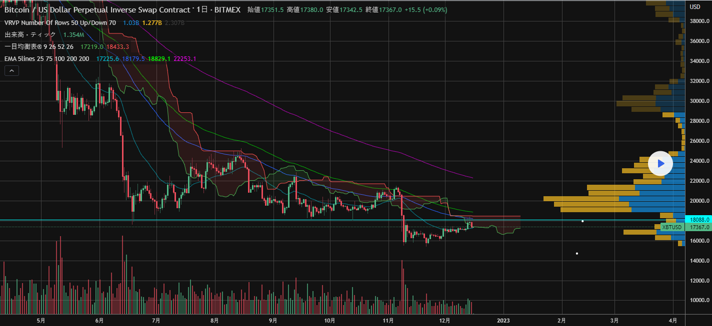 非常に遅い展開でイライラも募るが、BTCは18000ドルの暴落前の底値付近のラインをリターンムーブ