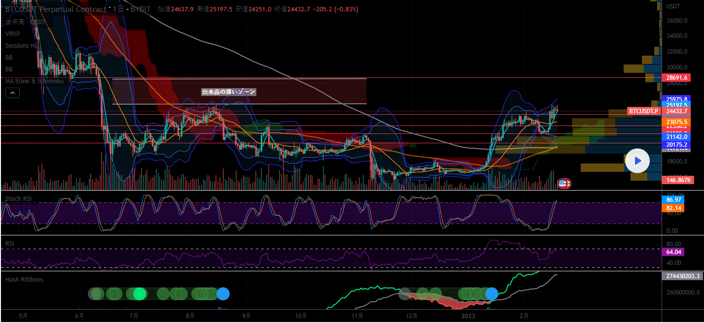 BTC/USDT 25000ドルを明確に抜ける事が出来れば上は軽そうだが!?