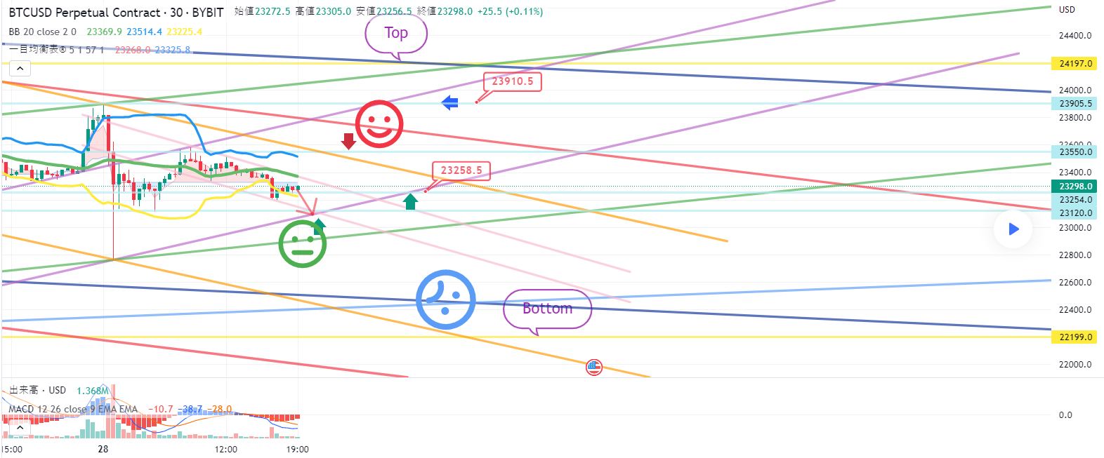 23550ショット -> 23258ロング – > 23910.5ターゲットまで