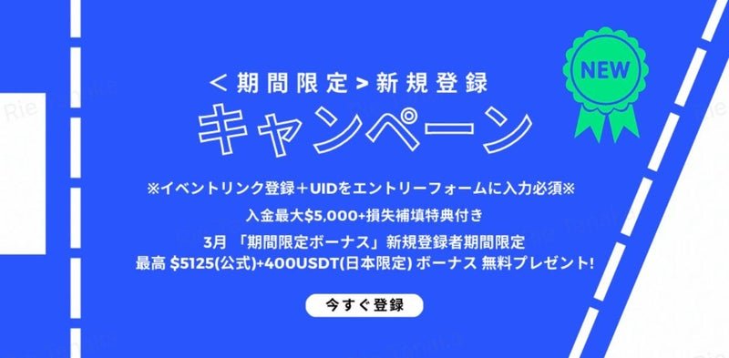 新規登録者 お1人様 合計最高5125USDT獲得可能!