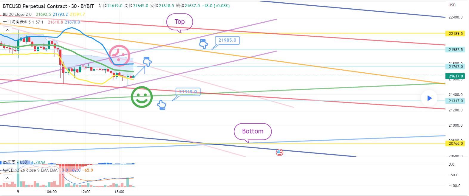 1. 21762火ショートポジション入口区間 / ピンク色抵抗線突破時手節街