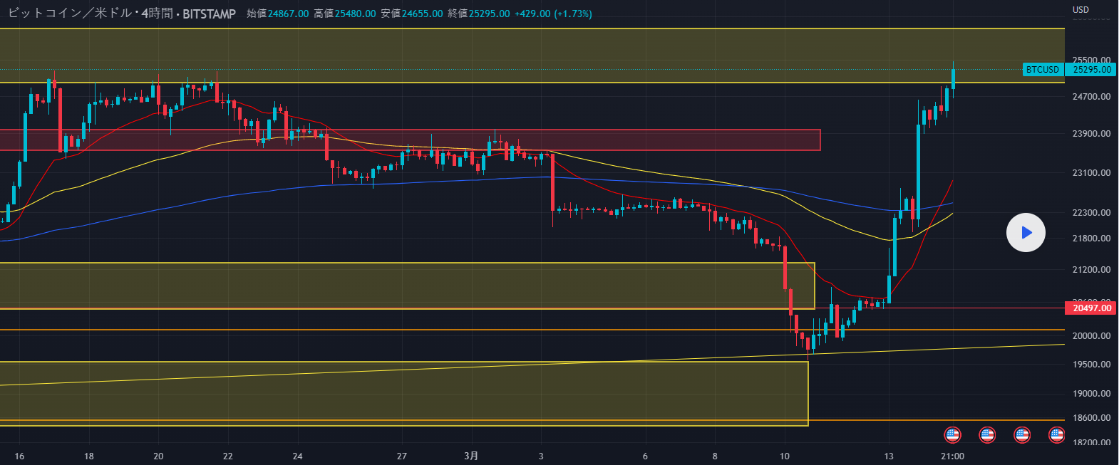 シリコンバレー銀行とシグネチャー銀行の預金引き出しに米規制当局が介入したことで安心感が広がったことが背景となっての急反発で想定よりもやや強い動きに繋がっているのが現状です。