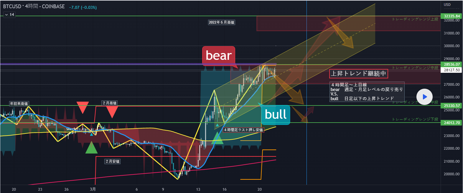 BTCUSD 3/21-26 短期中期で買い先行