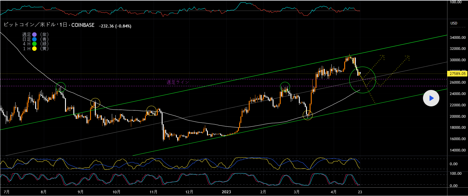 ビットコインは今週「−9%」の下落、4月では「−3%」下落しています。