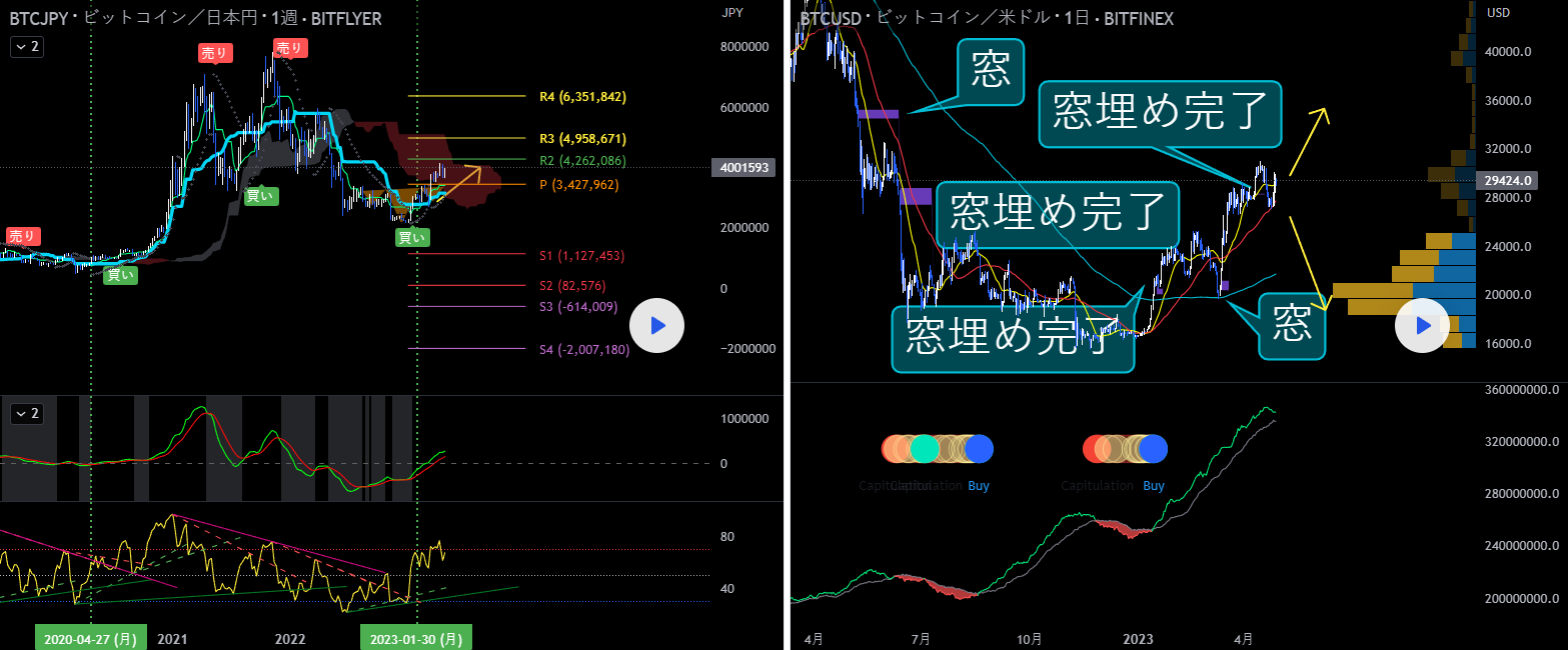 足 左:BTCJP 日足 右:BTCUSD