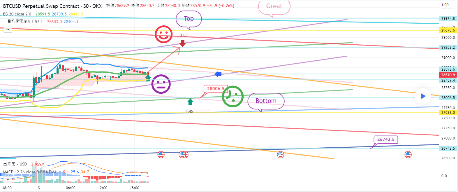 今日は同様のBTCUSD OKXチャートに移動しました。