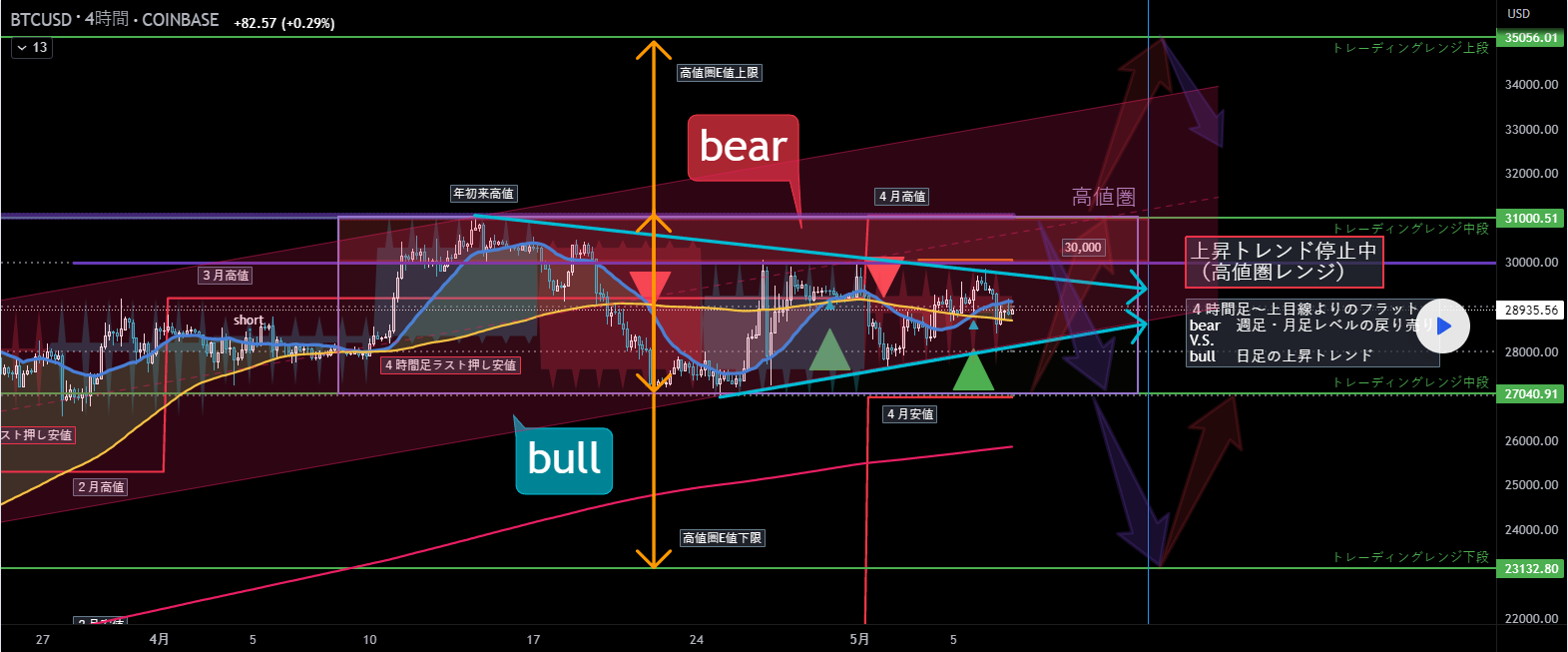 ・方向感がなく、30,000ドル近辺で売られれば買われ、買われれば売られる展開が続いている