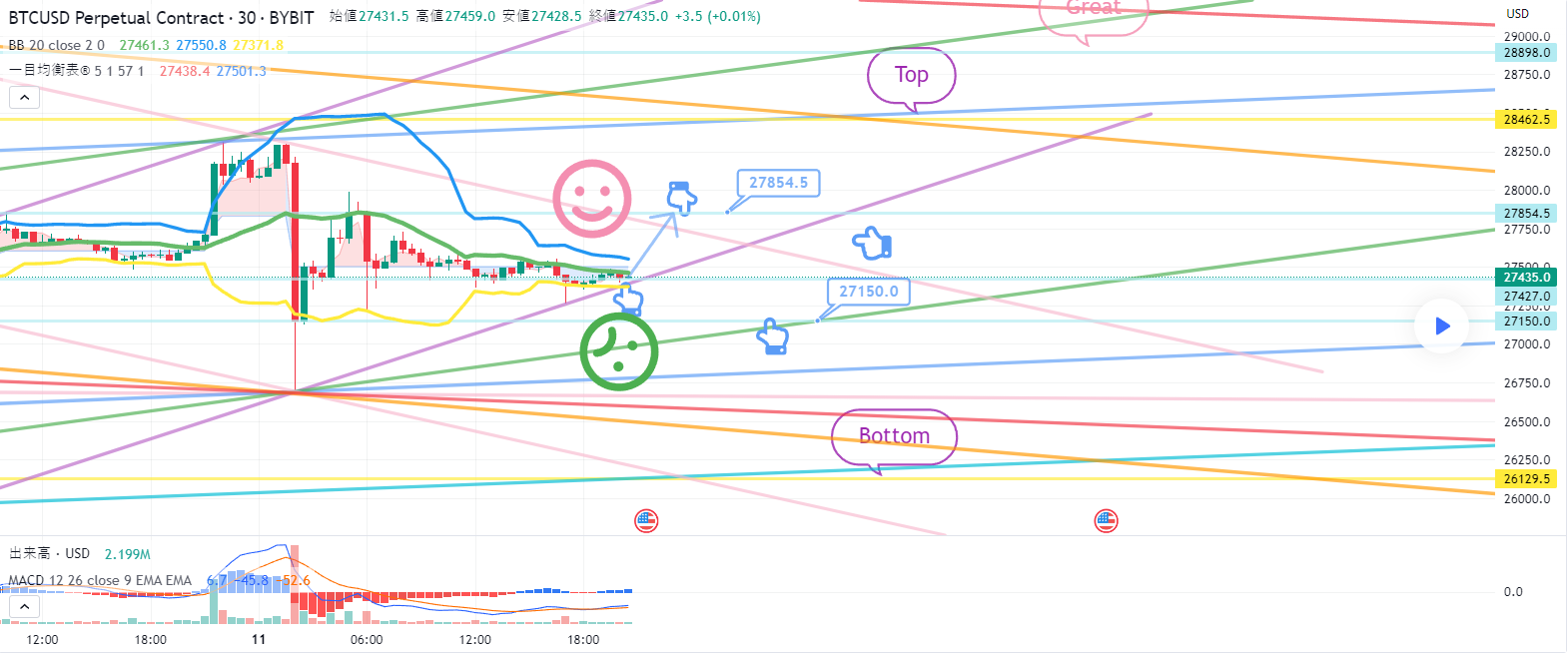 2. 27854.5火ショートポジションスイッチング/ピンク色抵抗線完全突破時の手折り