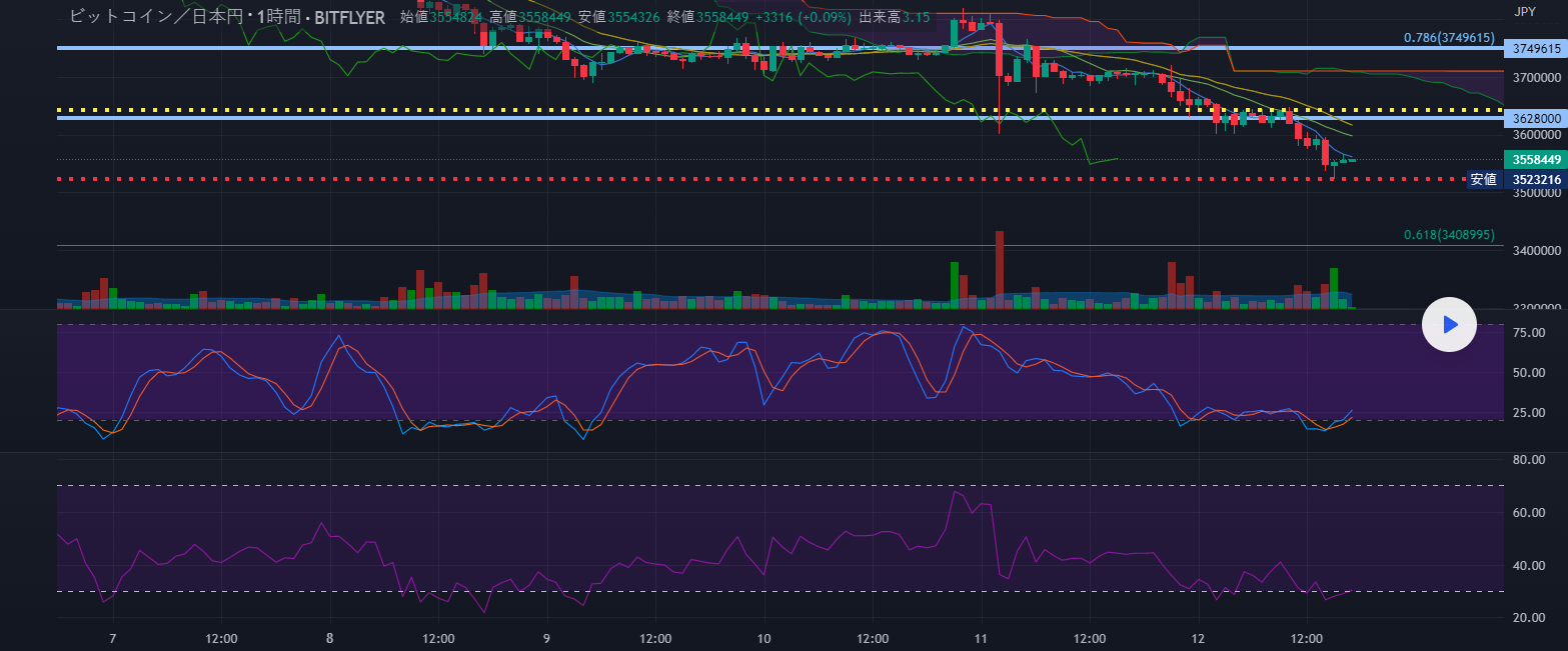 テクニカルポイント 3628000を超えて売り加速、