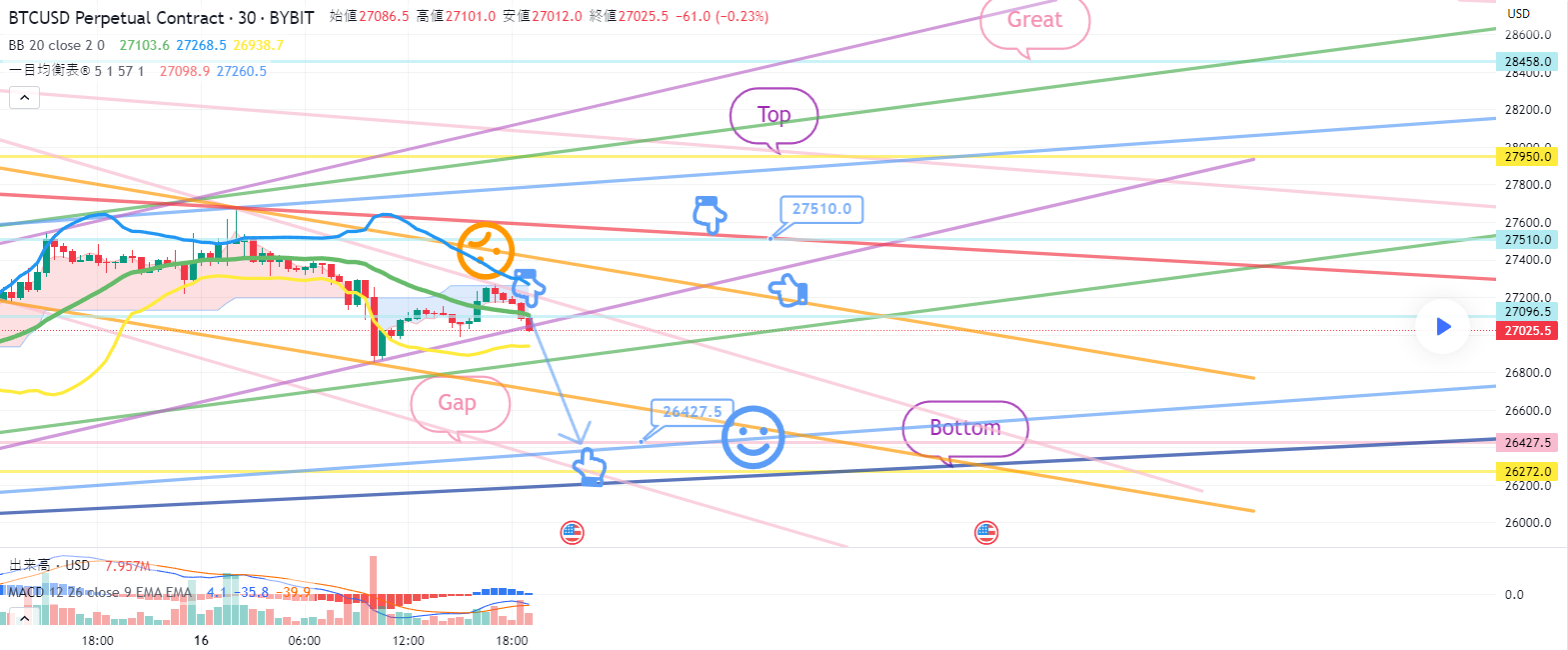 1. 27096.5火ショートポジション進入区間 / オレンジ色抵抗線突破時手節街