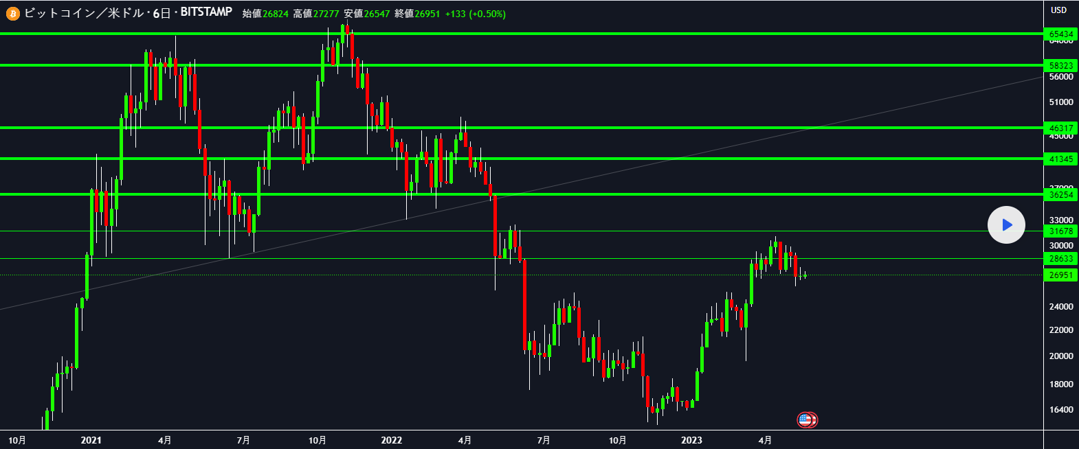 BTCビットコインのリバウンドライン、図中の緑色の線の価格はすべて所定の位置に反発し、強気相場が始まります。