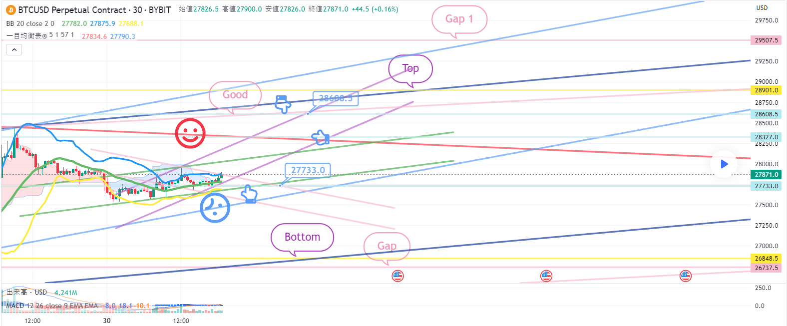 ピンク色の抵抗線を突破 – >水色の支持線まで