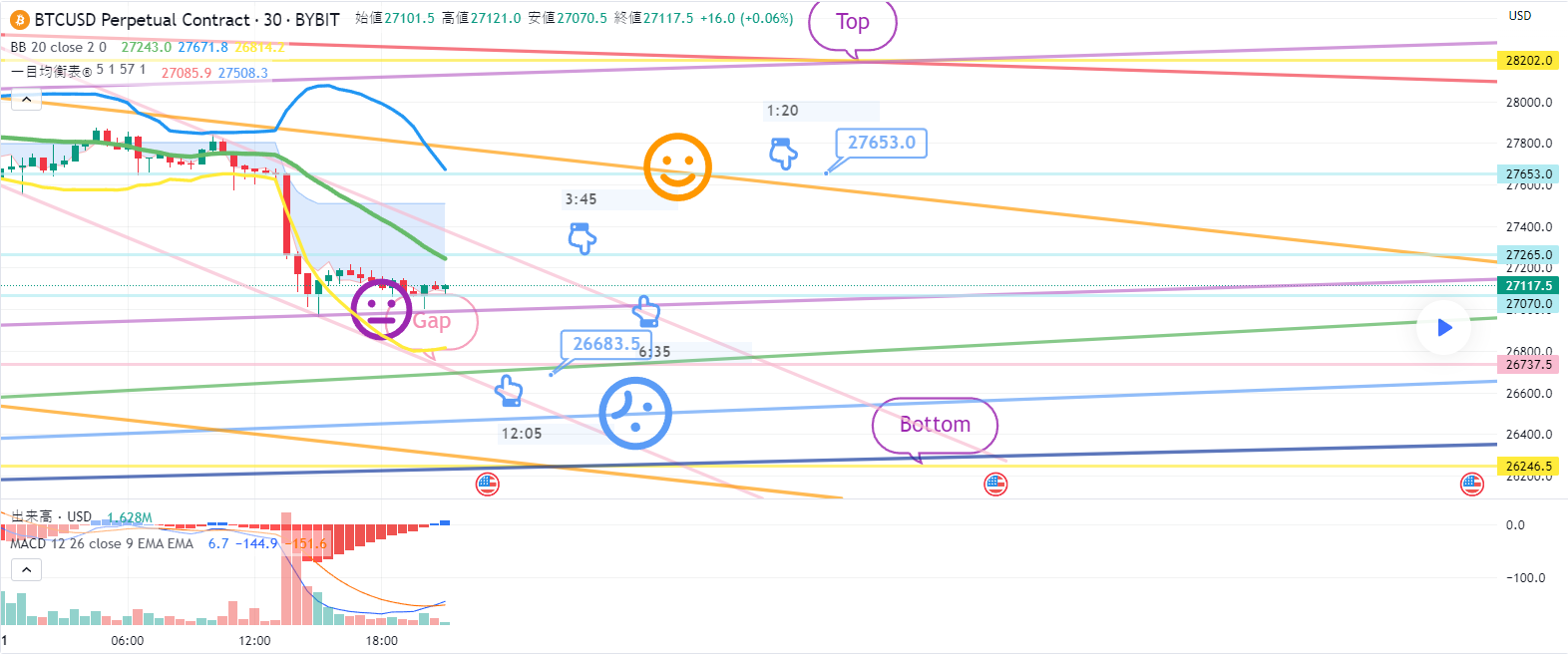 中間波動は自律区間 – >横ボーイ後27653ブルロングポジションターゲット