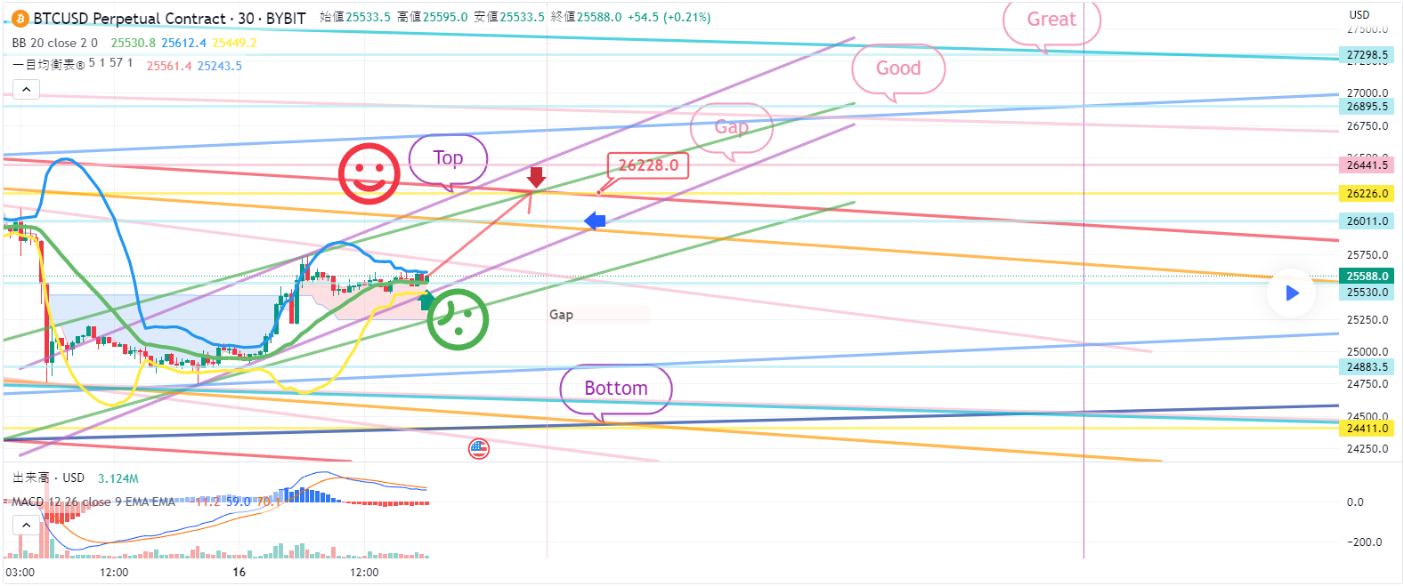 2. 26228ブルロングポジションターゲット ->週末の間Gap -> Good -> Great順にロングポジションターゲット