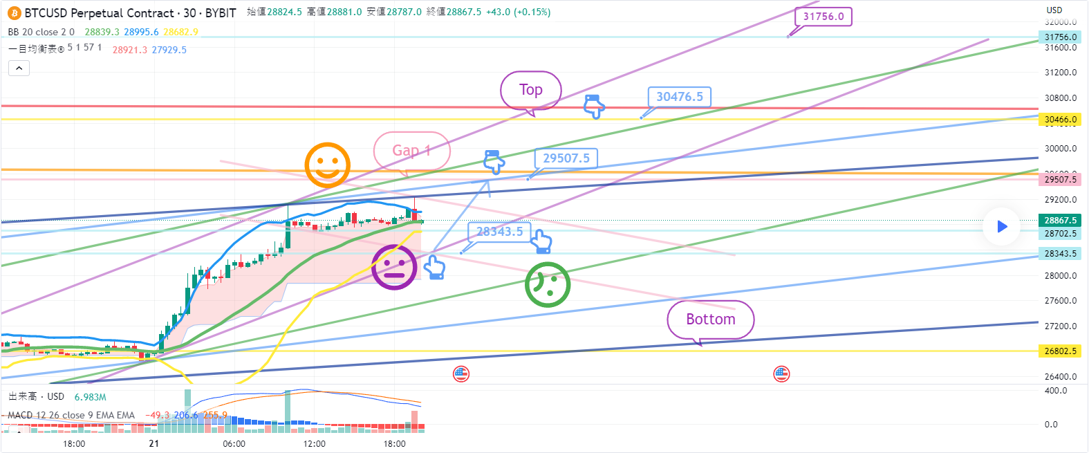 6月21日ビットコインBybitチャート分析です