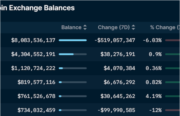 一見すると驚異的な純流出があり、その勢いは衰える気配がないにもかかわらず、Nansenのデータはバイナンスのステーブルコイン残高が健全であることも示している。同取引所のステーブルコイン残高は現在80億ドル(約1兆1200億円)強で、直近7日間の流出額は5億1900万ドル(約723億7500万円)、保有額のおよそ6%に相当する。次に保有量が多い取引所であるOKXは40億ドル(約5580億円)の残高がある。
