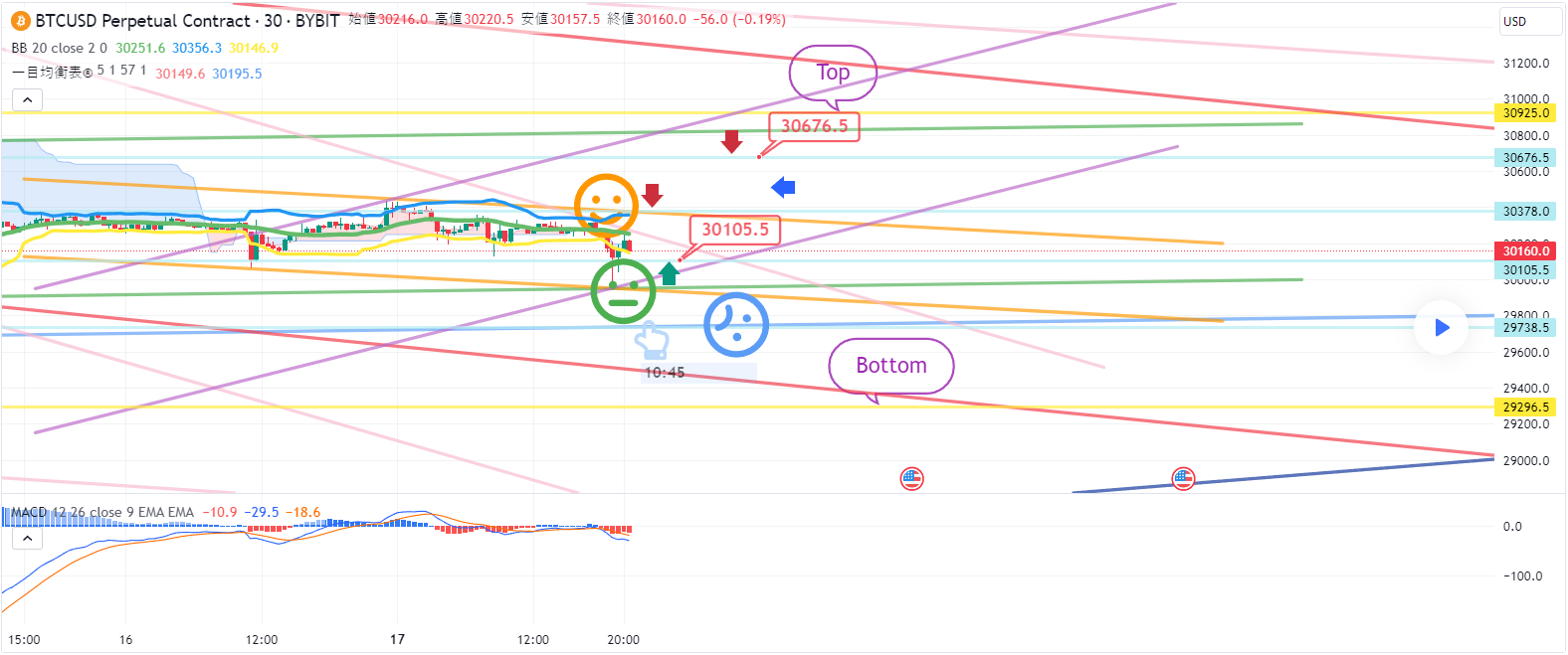 30676.5ドルロングポジションターゲット – >トップセクション2次ターゲット