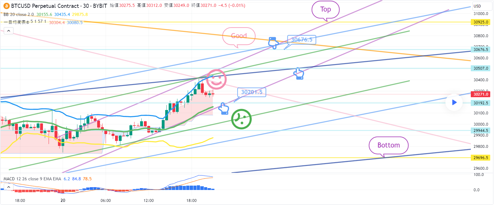 2. 30676.5ブルロングポジション1次ターゲット -> Top 2区間2次ターゲット