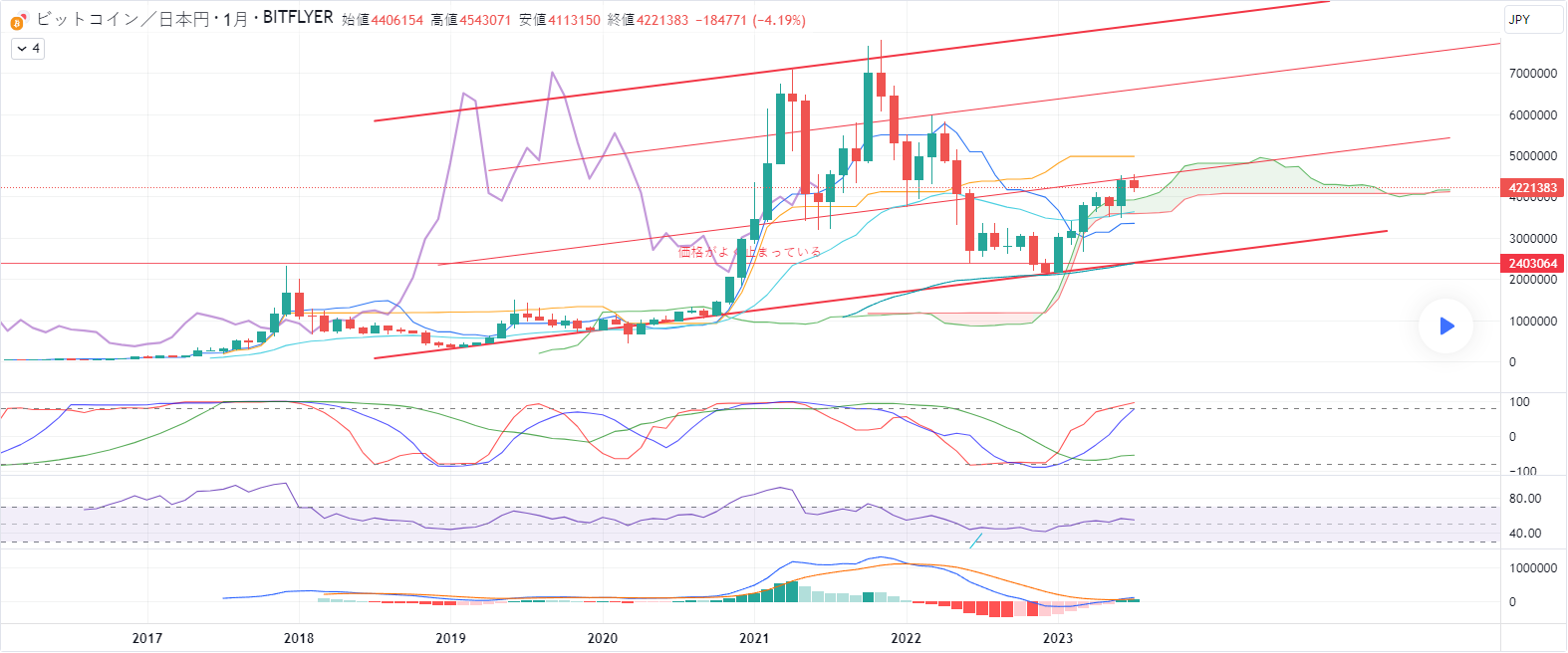 そして雲のうえに乗っているのが確認できるため、大きな再浮上もありえるのでは?と考えてしばらく分析をしていなかったのですが今日また分析してみることにしました。
