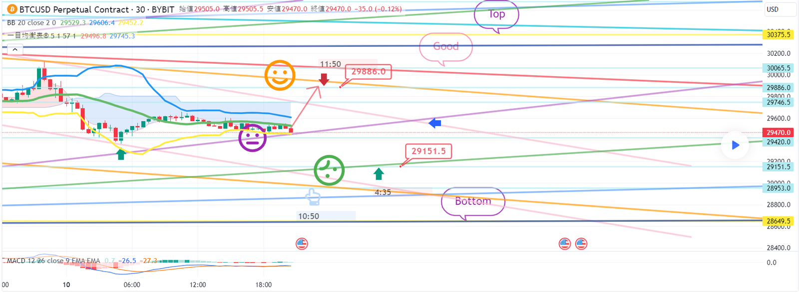 1. 29886火ショートポジション入口区間 / 赤色抵抗線突破時手節街