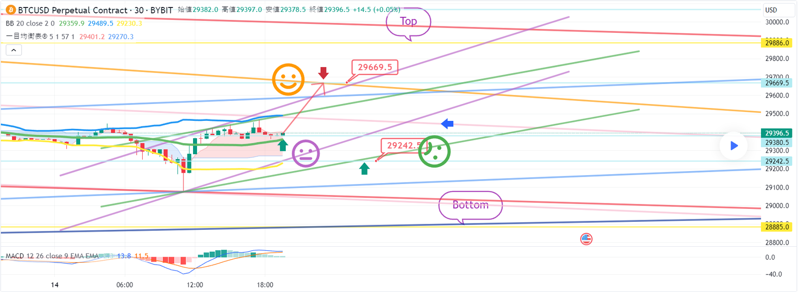 29380.5ドルロングポジションエントリー後 – > 29669.5ドルショートスイッチング