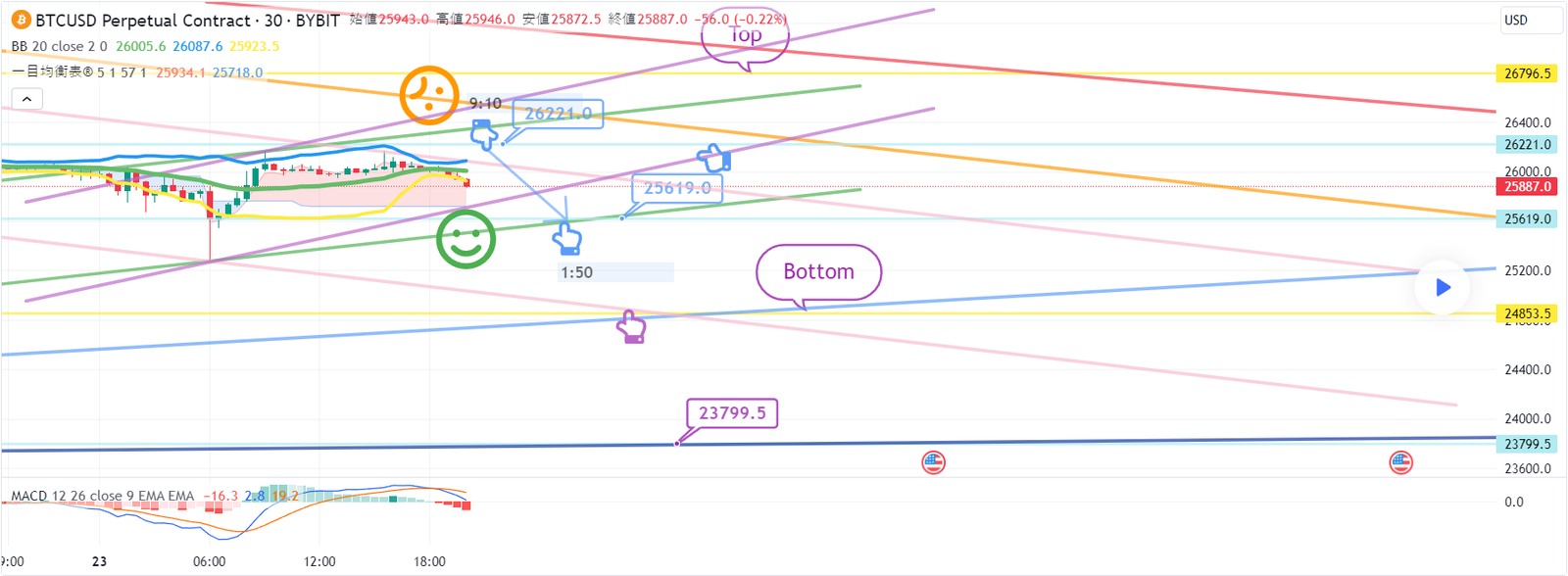 1. 26221火ショートポジション進入区間 / オレンジ色抵抗線突破時の手折り
