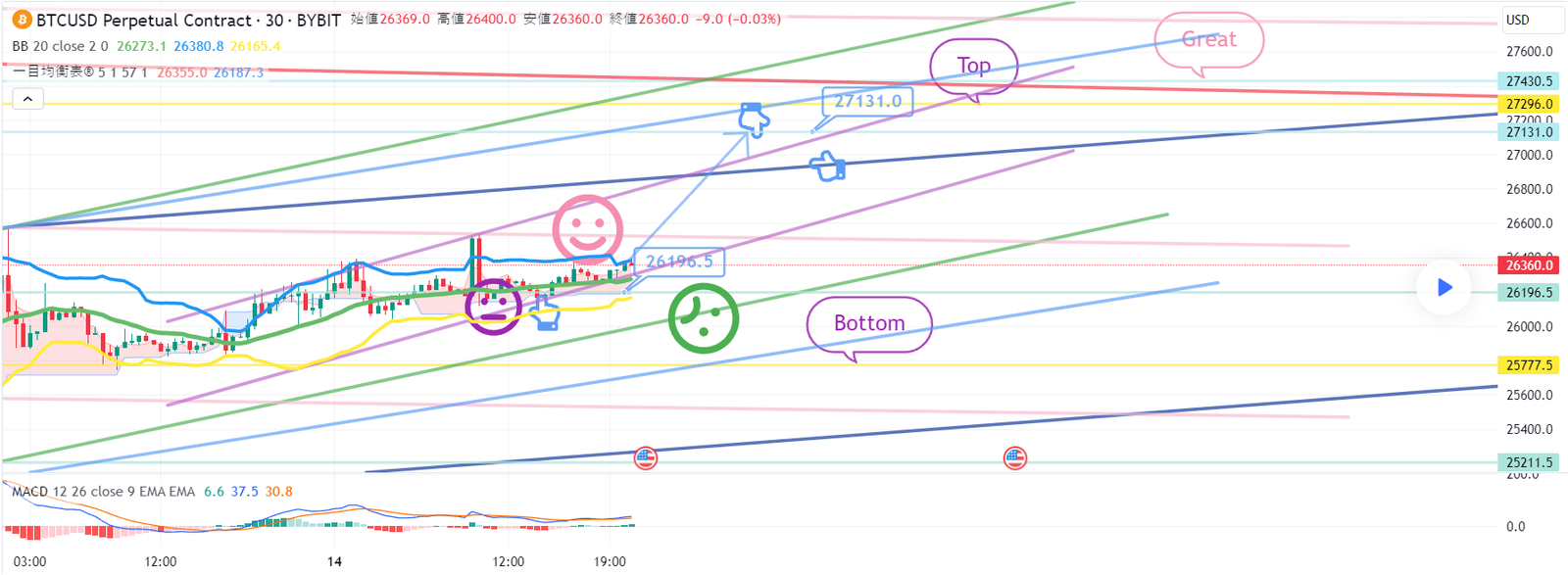 午前作図で追撃買収進入区間26196.5ドルそのまま延長します。