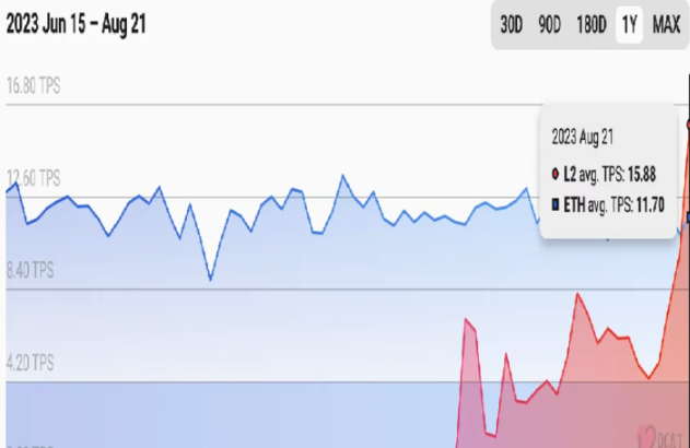 米暗号資産取引大手のコインベース(Coinbase)が支援するレイヤー2ブロックチェーン「Base」が、直近24時間で過去最高の平均15.88トランザクション/秒(TPS)を記録。イーサリアムや競合するレイヤー2ブロックチェーンのアービトラム(Arbitrum)、オプティミズム(Optimism)を上回った。l2beatのデータで判明した。