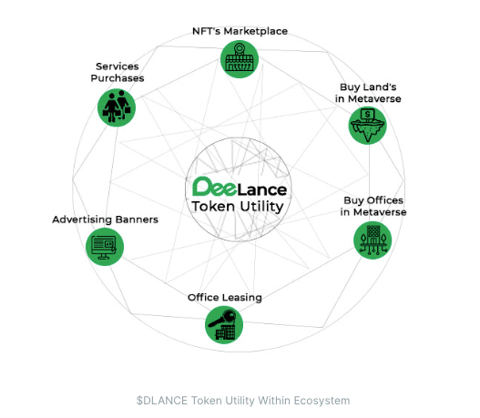 DeeLanceの将来性について、仮想通貨関連のアナリストたちはすでに、成長する可能性のある仮想通貨として投資を推奨しています。DLANCEの価値はDeeLanceのプラットフォームを超えており、メタバースでの土地購入やNFTマーケットプレイスでの取引に利用することが可能です。さらに、オフィスのレンタルや広告の支払いなど、エコシステムの発展に伴って登場するサービスや機能にも活用することができます。NFTは所有権の確認だけでなく、WEB3技術を活用したDeeLanceの仮想世界で、交流のためのアバターとしても利用される予定です。