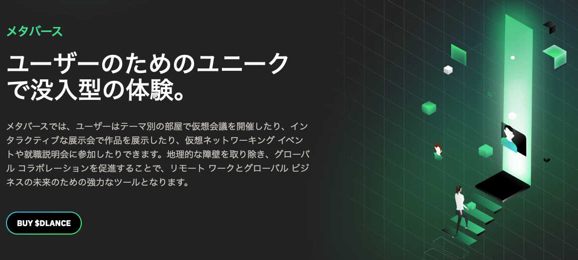 DeeLanceは、分散型Web3技術を取り入れた次世代のフリーランスとリクルートメントプラットフォームであり、世界が賢く共同作業する空間を作り出します。このプラットフォームは、最先端のNFTマーケットプレイス、革新的なメタバース、革新的なリクルートメントプラットフォームという3つの主要な柱に基づいて構築されています。日本語バージョンも提供しています。これらの柱は、フリーランスプロセスを効率化し、すべてのユーザーにとってシームレスな体験を作り出すための包括的なツールとサービスを提供します。