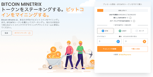 「Bitcoin Minetrix」は、BTCMTXトークンを購入しステーキングすることで、マイニング参加が可能となるクラウドマイニングプラットフォームです。このプロジェクトは分散型アプローチを採用し、クラウドマイニングに関するリスクを最小化し、その信頼性を向上させることを目指しています。