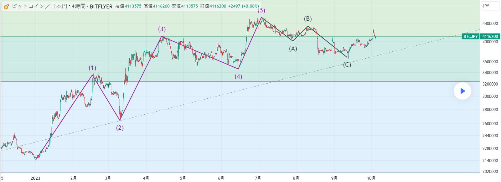 今年に入りBTCは見本のように綺麗なエリオット波動を作り上昇しています。