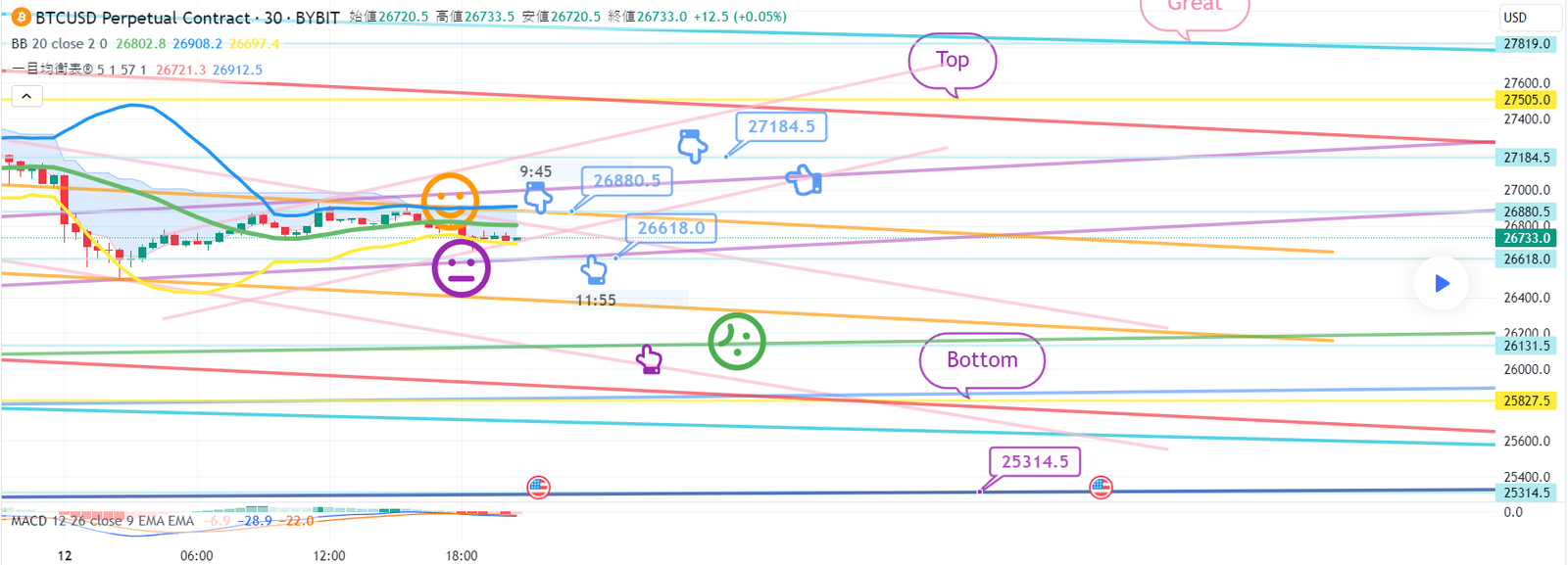 1. 26880.5火ショートポジション入口区間 / オレンジ色抵抗線突破時手節街