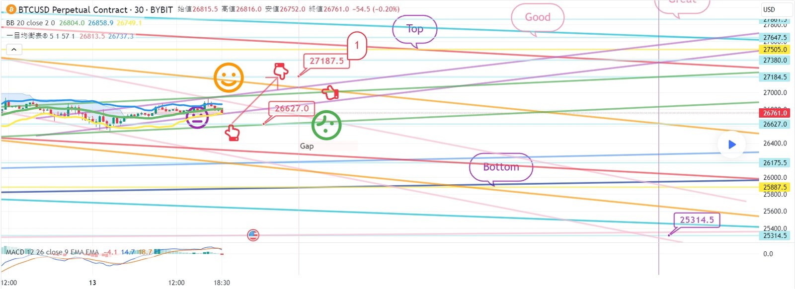 2. 27187.5ドル 1次ターゲット -> 1番区間 27380ドル 2次ターゲット