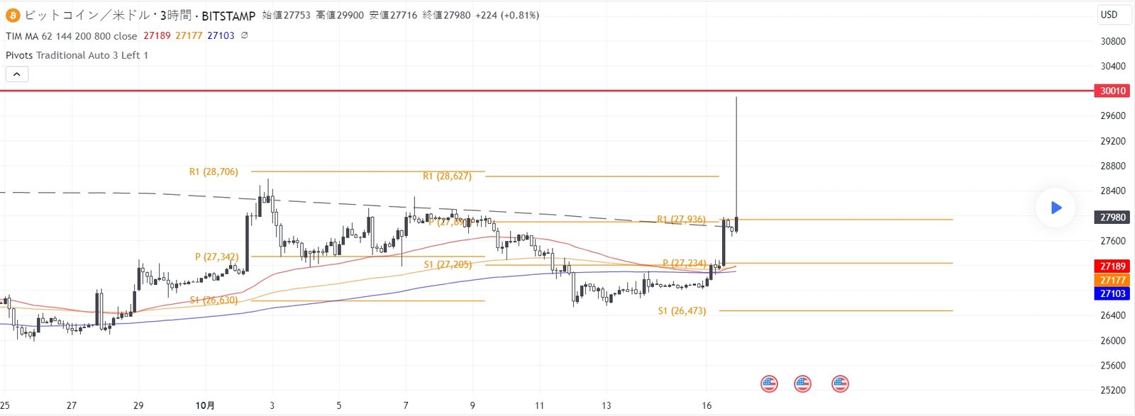 現物ETF承認のデマでビットコイン急騰。注目が集まったのでしばらく買い支えられるか