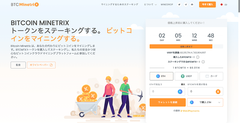 ビットコインは最も知名度が高い暗号通貨の一つであり、その価格は市場の需給、投資者の感情、規制の変化など多くの要因によって影響を受けます。Bitcoin Minetrixは、コストが高くアクセスが難しいビットコインのマイニングに対する解決策を提供しています。Bitcoin Minetrixのクラウドマイニングプラットフォームを利用することで、ユーザーはBTCMTXトークンを購入してステーキングすることにより、マイニングに参加することが可能になります。この方式は、クラウドマイニングの信頼性を高め、以前の詐欺的なサービスによって損なわれた評判を改善することを目的としています。