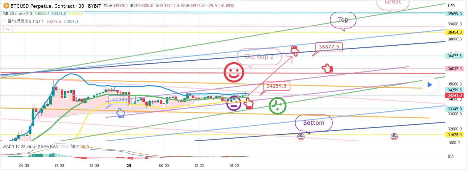 2. 36877.5ブルロングポジション1次ターゲット -> Top区間2次ターゲット