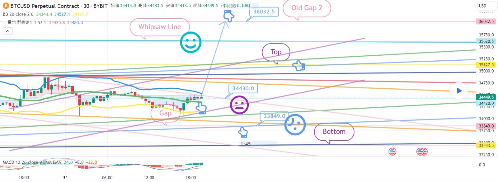 2. 36032.5火ショートポジション進入区間 / 明るい水色抵抗線突破時手節街