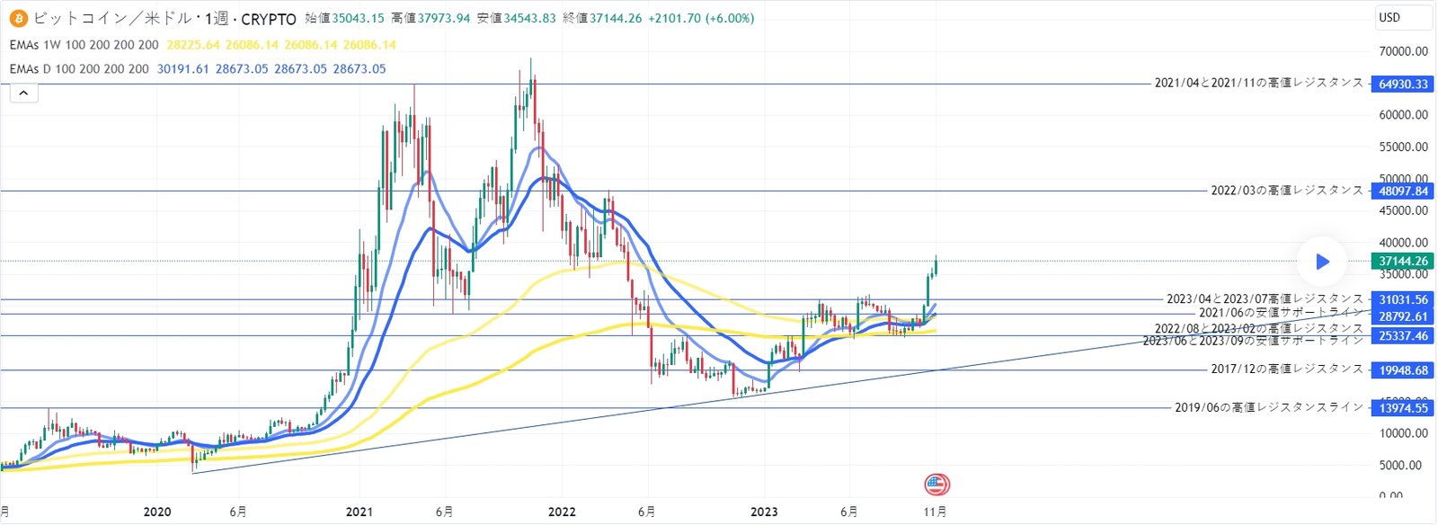BTCのレジサポ