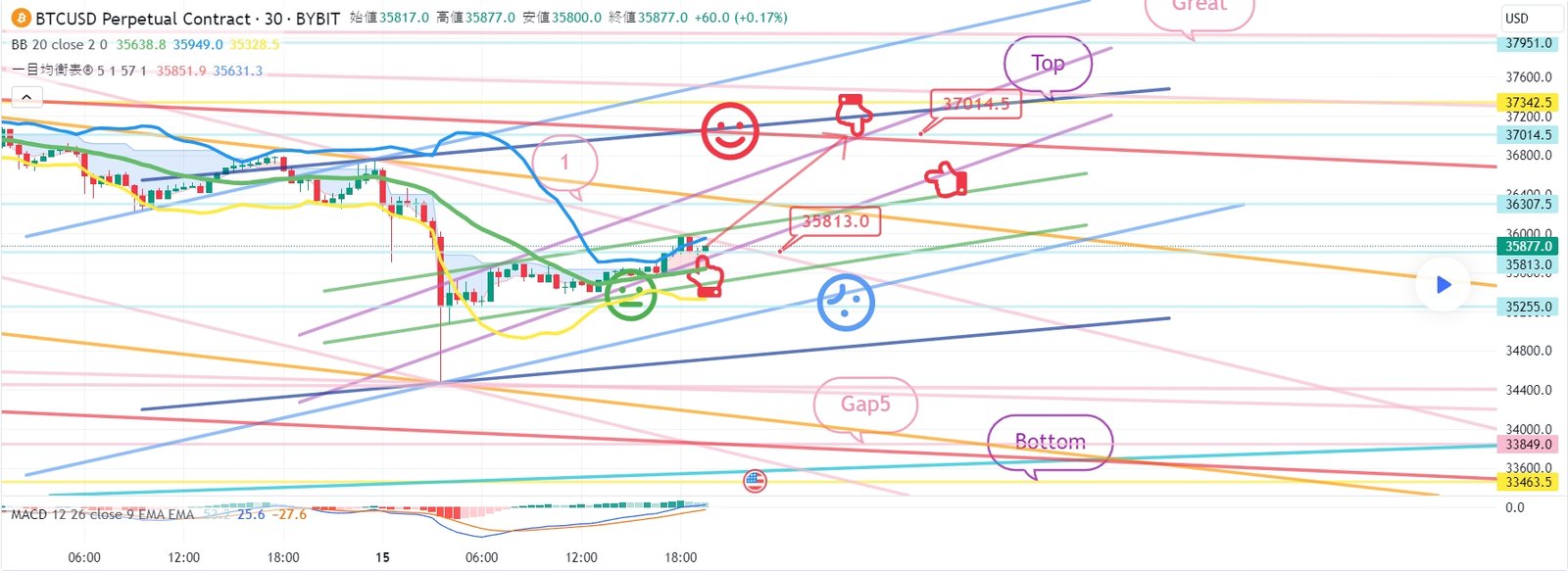 2. 37014.5ブルロングポジション1次ターゲット -> Top区間2次ターゲット